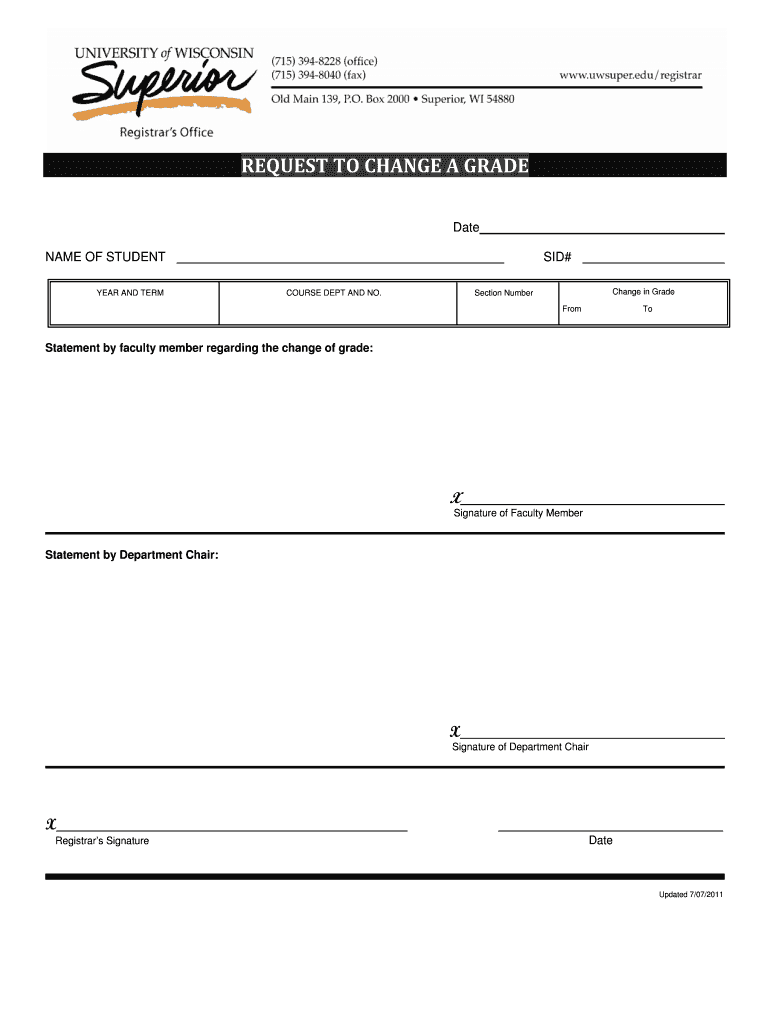 Get the free Grade Change Request Form