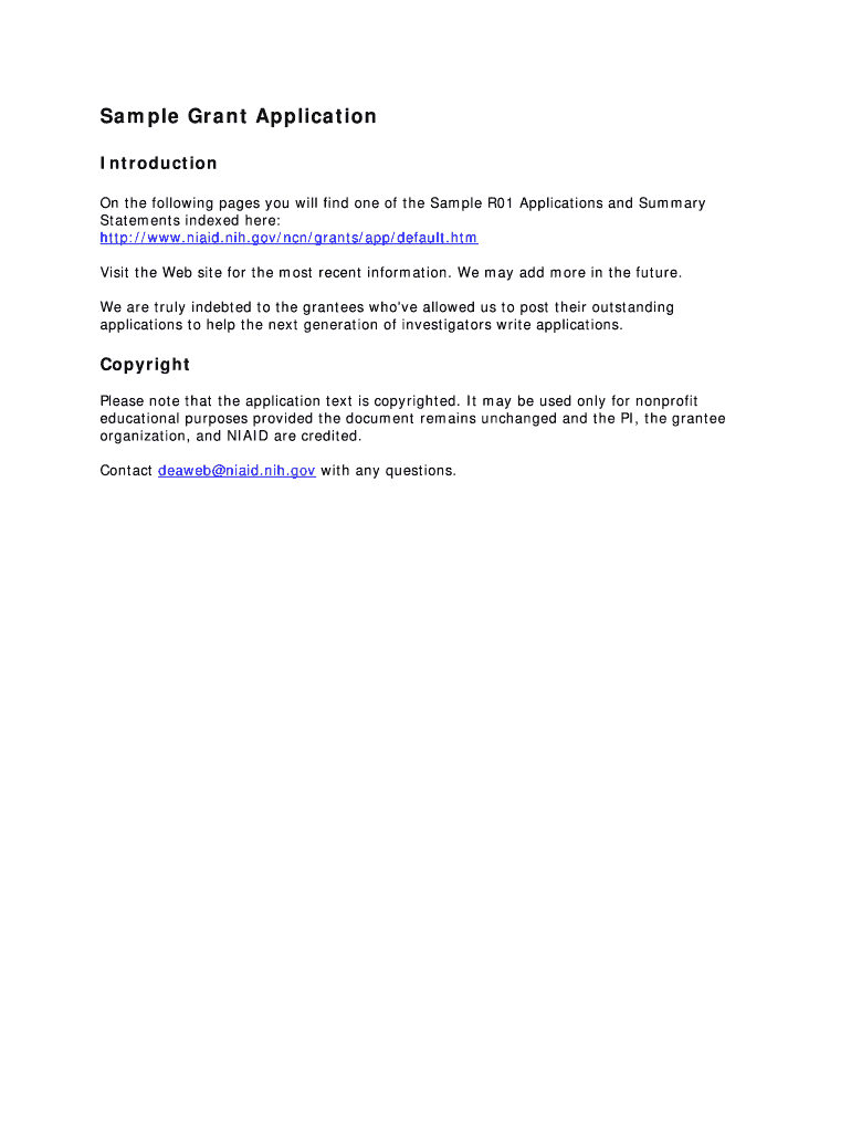 Get the free Sample Grant Application