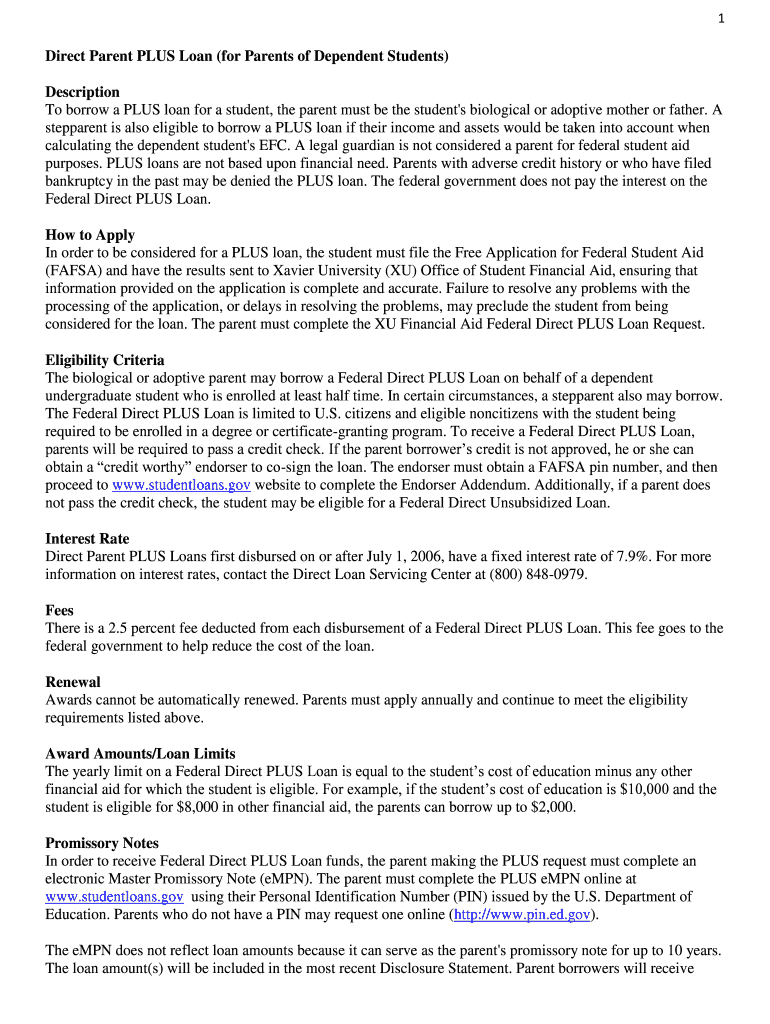 Get the free Direct Parent PLUS Loan (for Parents of Dependent Students)