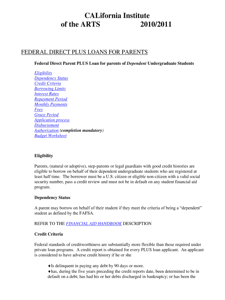 Eligibility Criteria for the Federal Direct PLUS Loan for Parents