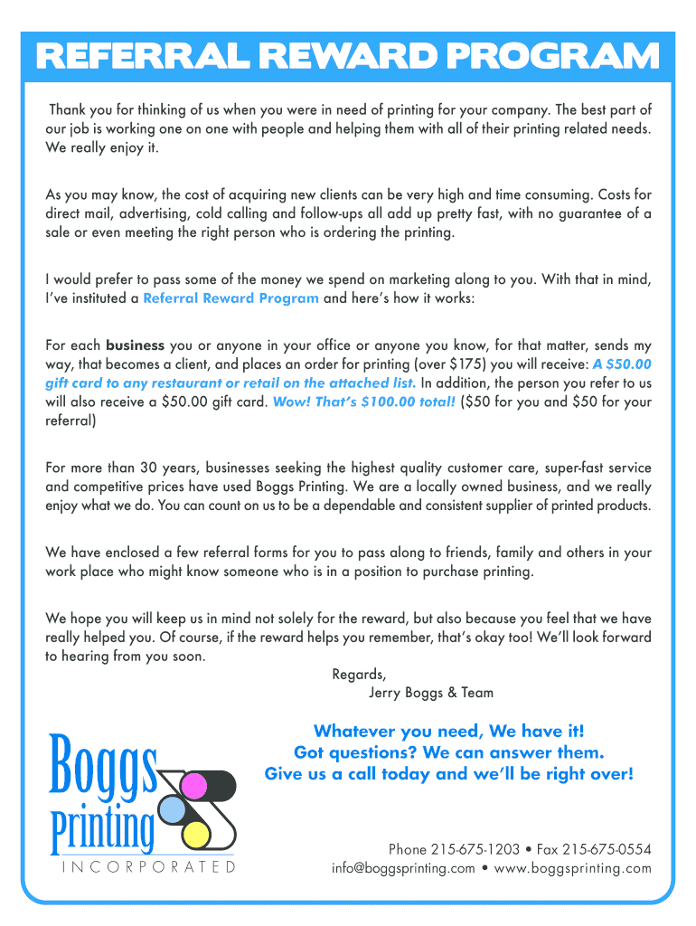 Fill out your referral reward program online with pdfFiller!