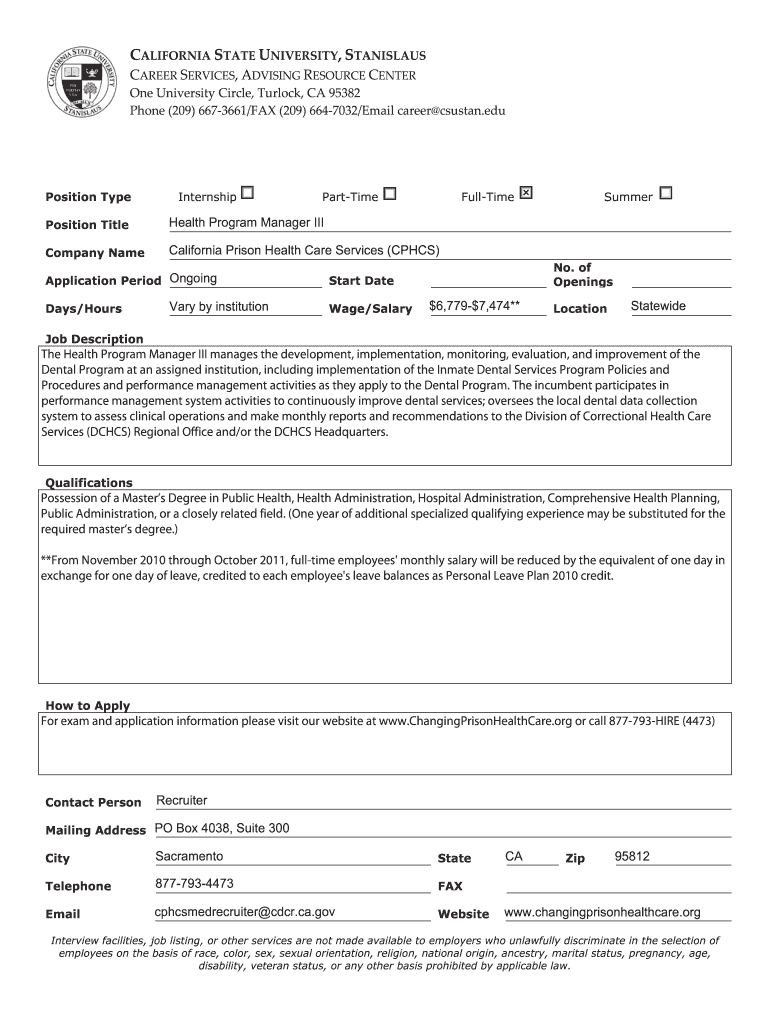 Get the free Employment Listing Form - csustan