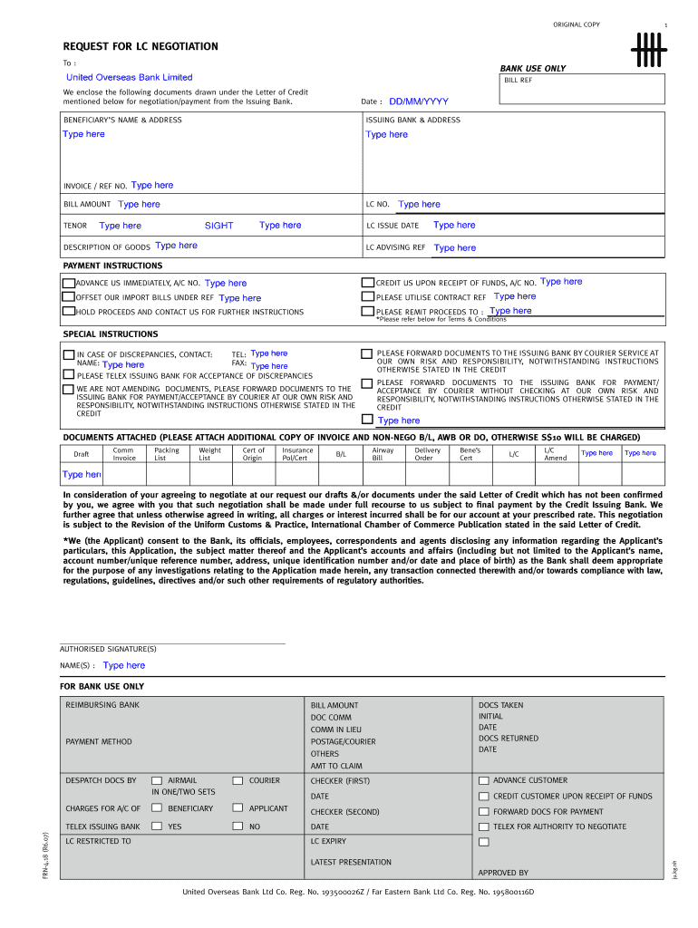 How to fill out the request for lc negotiation