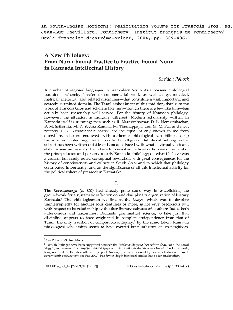 In South Indian Horizons: Felicitation Volume for Francis Grow, ed. Jean-Luc Chevillard. Pondicherry: Institute Francis de Pondichry/ Cole franchise dextrmeorient, 2004, pp. 389406. A New Philology: