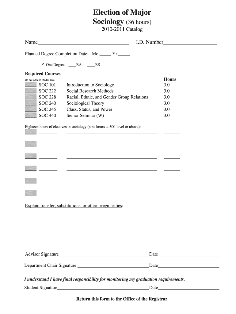 How to fill out the sociology degree completion form