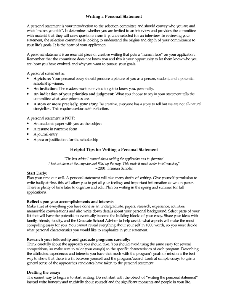 Get the free A personal statement is your introduction to the selection committee and should conv...