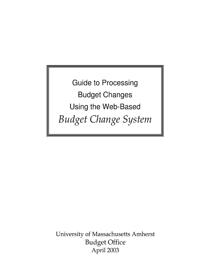 Using the WebBasedBudget Change SystemUniversity of Massachusetts AmherstBudget Office