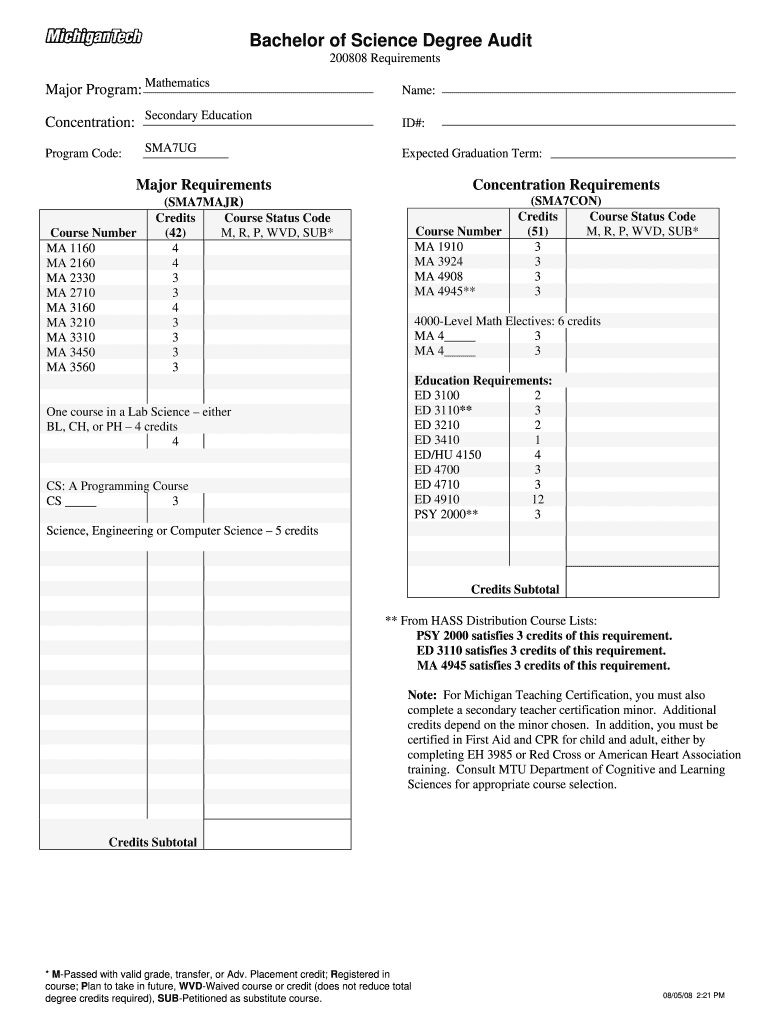 Get the free mtu degree audits