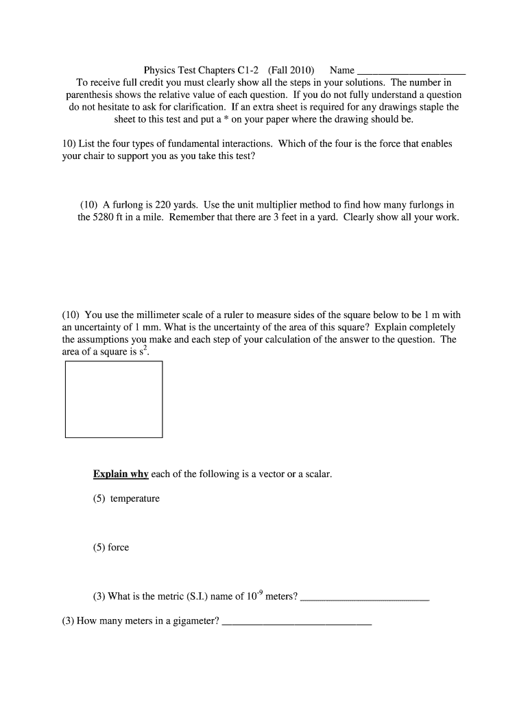 Get the free Physics Test Chapters C1-2