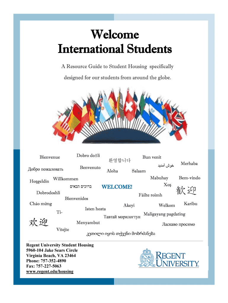 Welcome, International Students A Resource Guide to Student Housing specifically designed for our students from around the globe. Dobro doliBienvenueBenvenuto HogeldinBun vent AlohaSalaamMabuhay XoWillkommen
