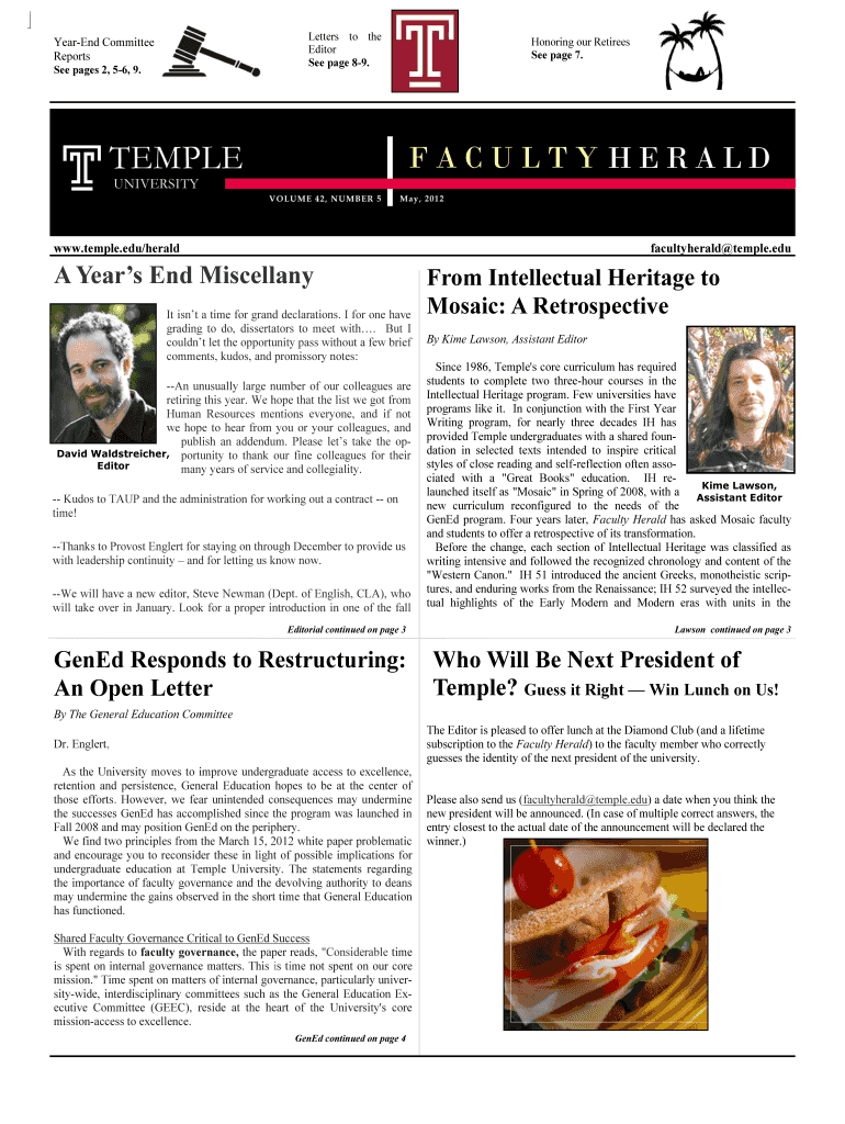 Letters to the Editor See page 89. YearEnd Committee Reports See pages 2, 56, 9. Honoring our Retirees See page 7. www.temple.edu/herald faculty herald temple.edu A Years End Miscellany It isn't a
