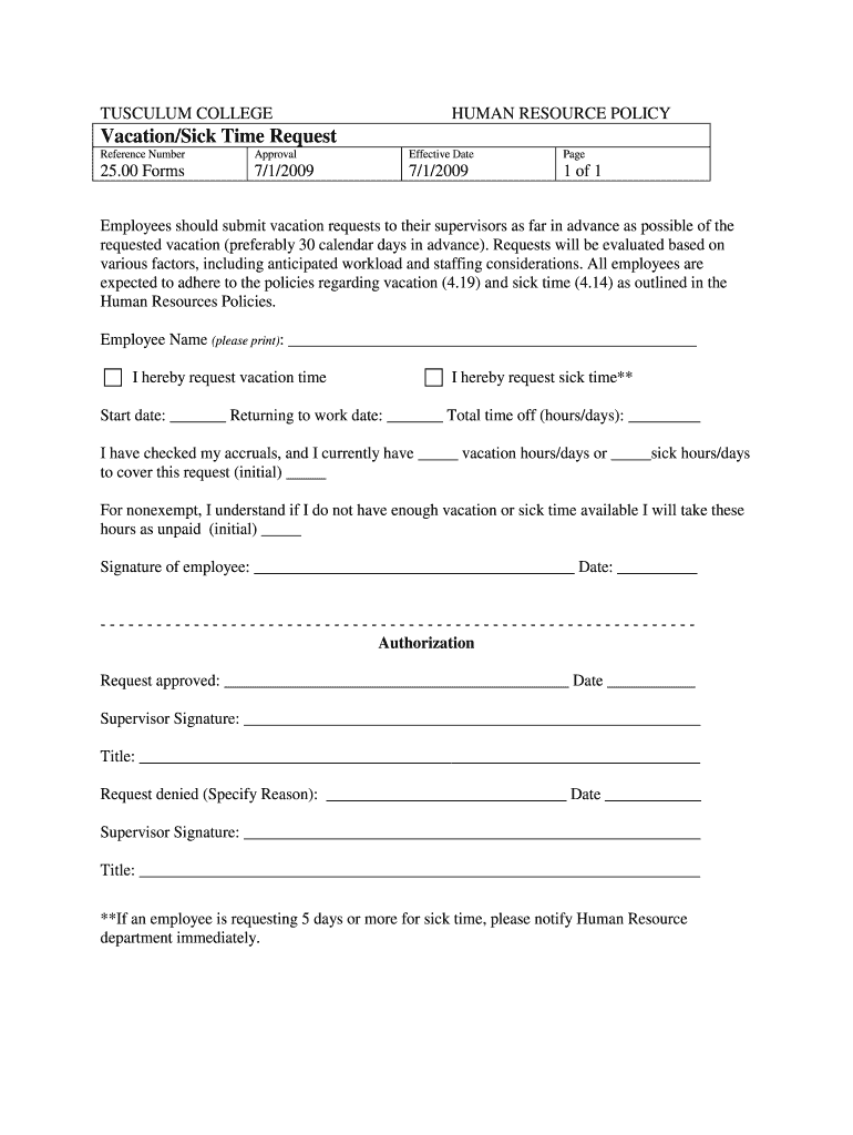 Get the free Vacation/Sick Time Request - tusculum