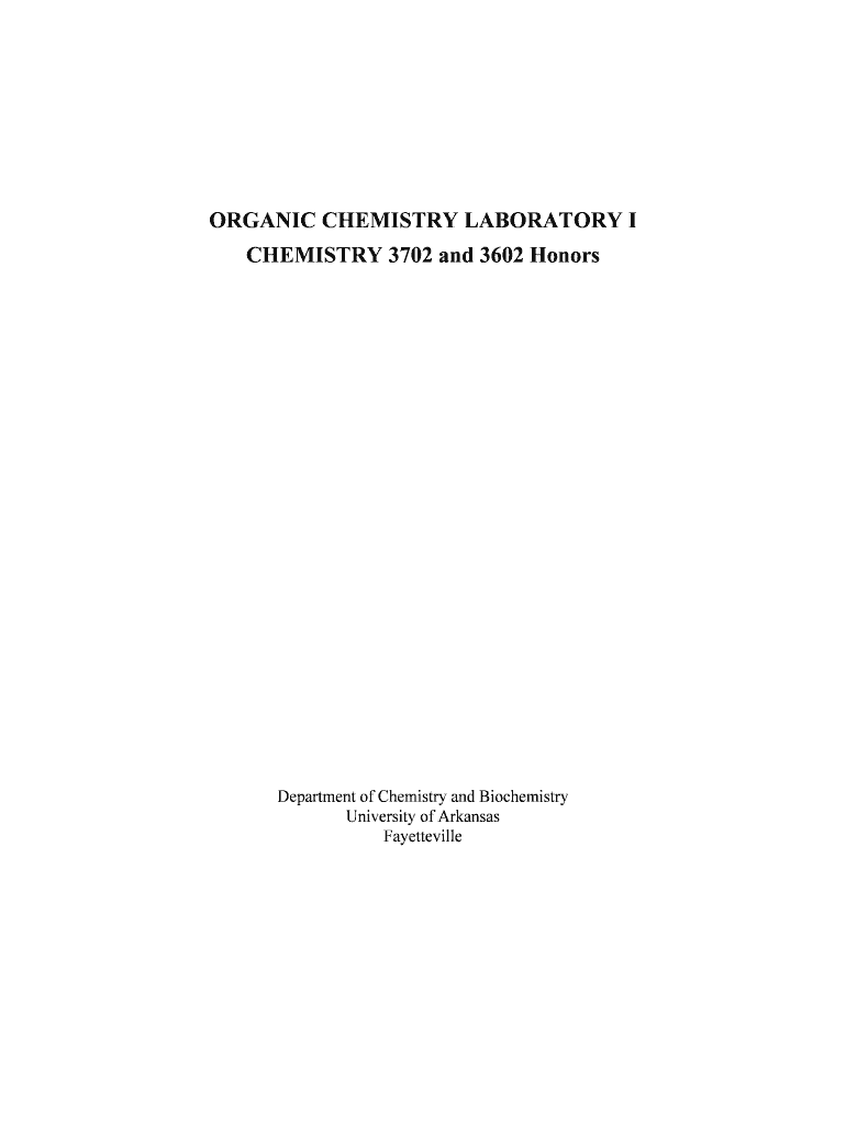 This document serves as a comprehensive manual for students enrolled in Organic Chemistry Laboratory I at the University of Arkansas. It includes general information about the course, safety regulations,