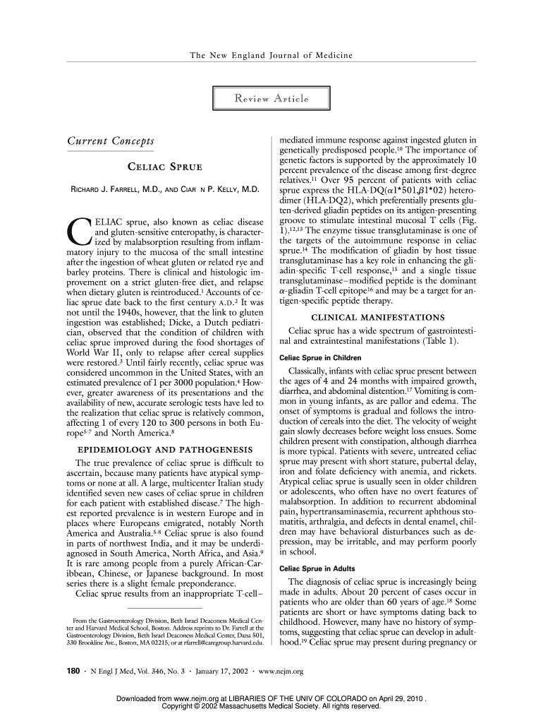 RICHARD J. FARRELL, M.D., INDIAN P. KELLY, M.D.CELIAC spree, also known as celiac disease