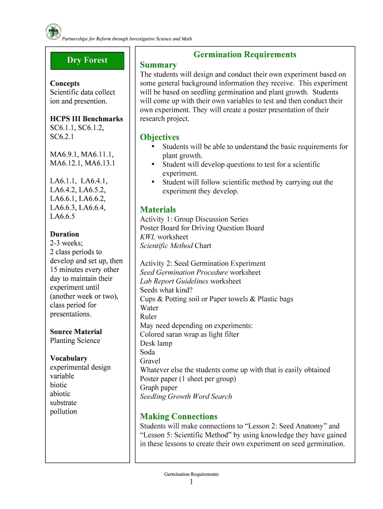 The Science Experiment Template is an activity worksheet designed for students to conduct their own seed germination experiments.