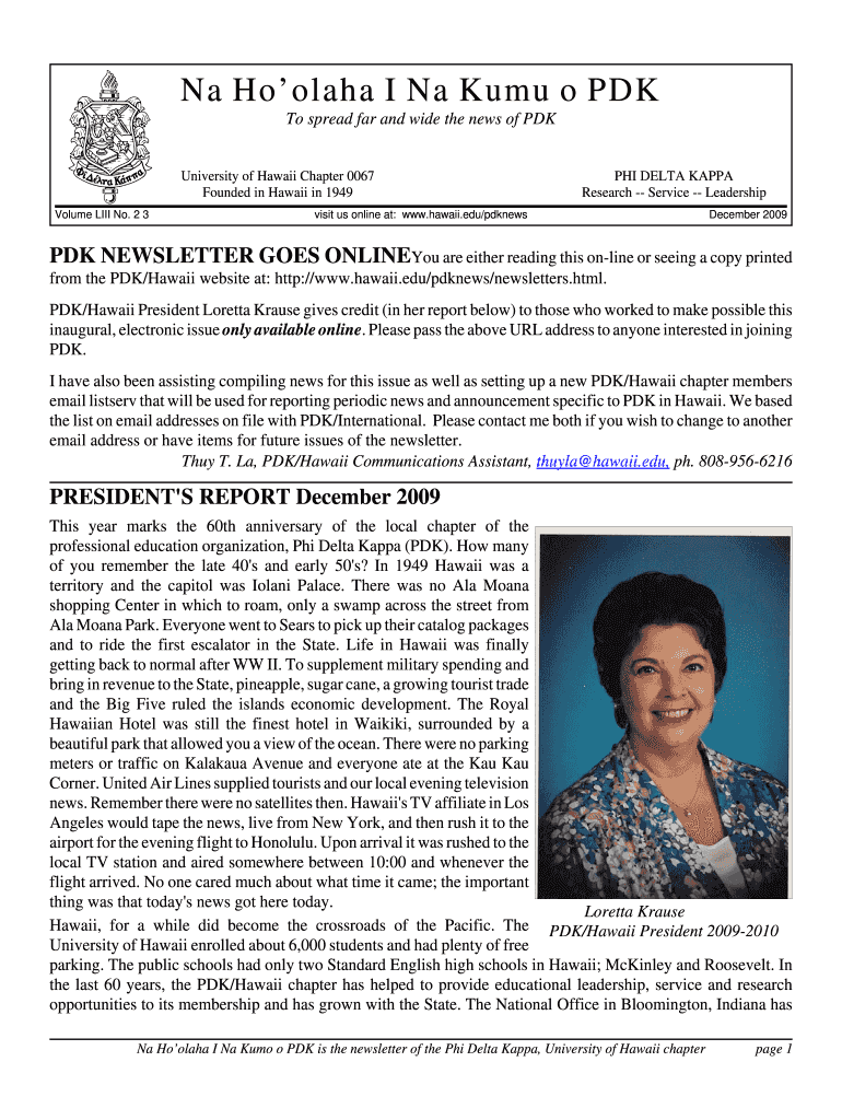 Get the free Na Ho’olaha I Na Kumu o PDK - hawaii