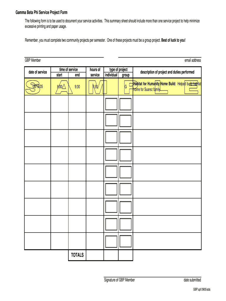 Get the free Gamma Beta Phi Service Project Form
