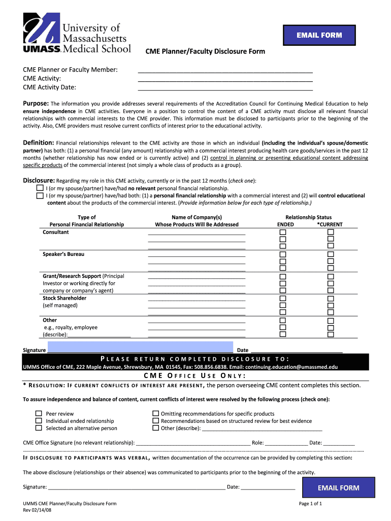 Moreover, the form provides an element of transparency for participants in CME activities. By clearly documenting financial relationships, it fosters trust and accountability within the medical community, enhancing the overall quality of education.