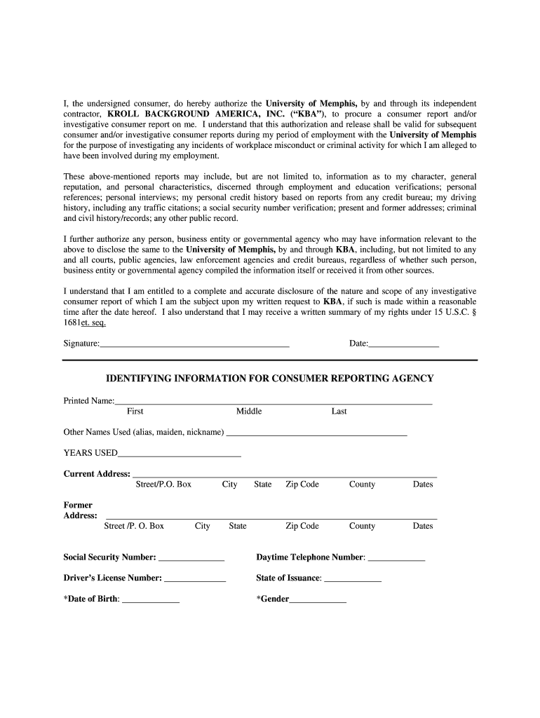 Any job applicant at the University of Memphis can complete the Fair Credit Reporting Act Disclosure Form as part of their employment application process.