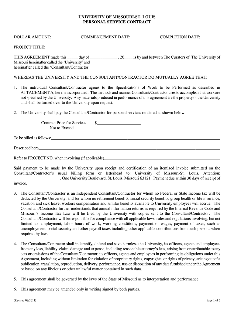 Get the free Personal Service Contract - umsl