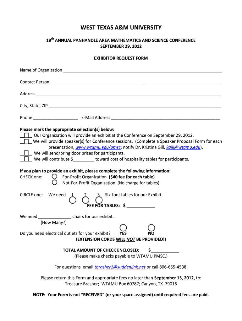 How to fill out 19th ANNUAL PANHANDLE AREA MATHEMATICS AND SCIENCE CONFERENCE - EXHIBITOR REQUEST FORM