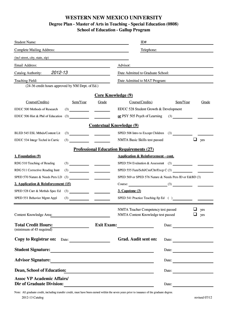 Get the free Degree Plan - Master of Arts in Teaching - Special Education - wnmu
