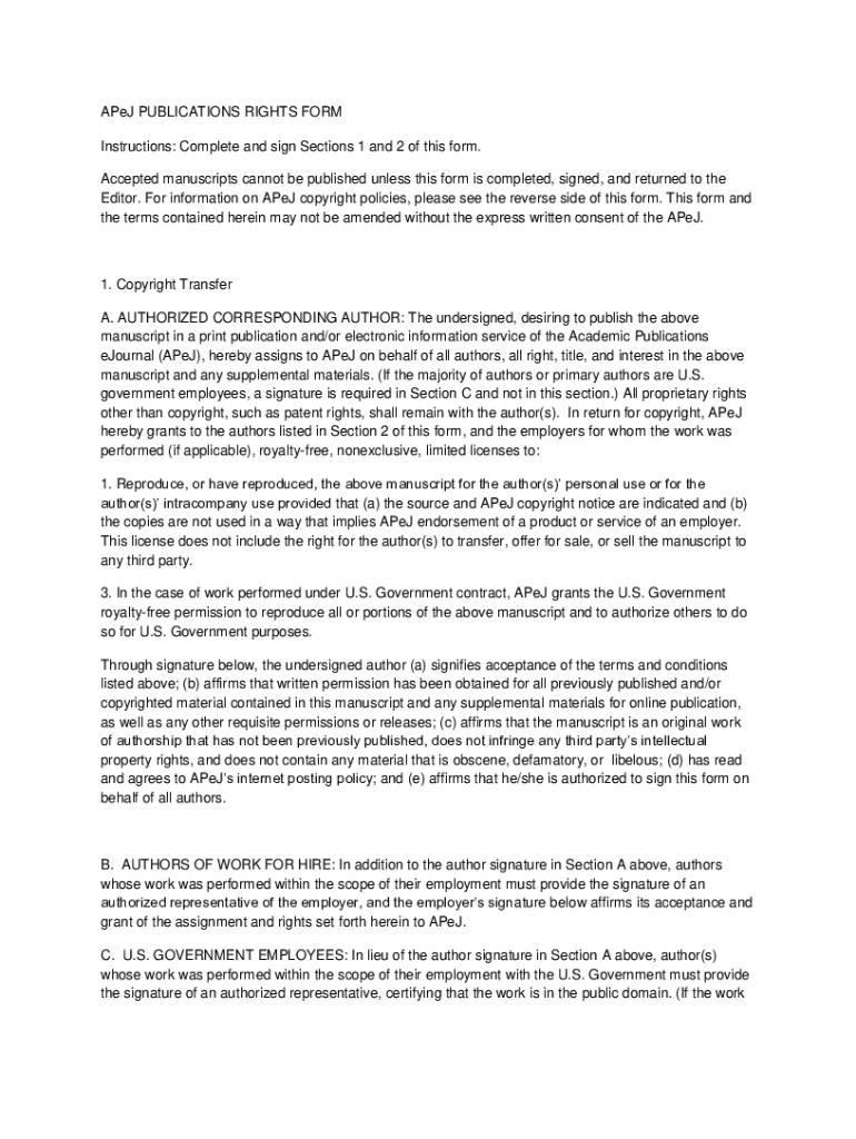 The APeJ Publication Rights Form serves several important purposes. First, it provides authors with a guarantee that their copyright will be handled properly and legally protected. By using this form, authors can streamline their manuscript submission process, making it more efficient and straightforward.