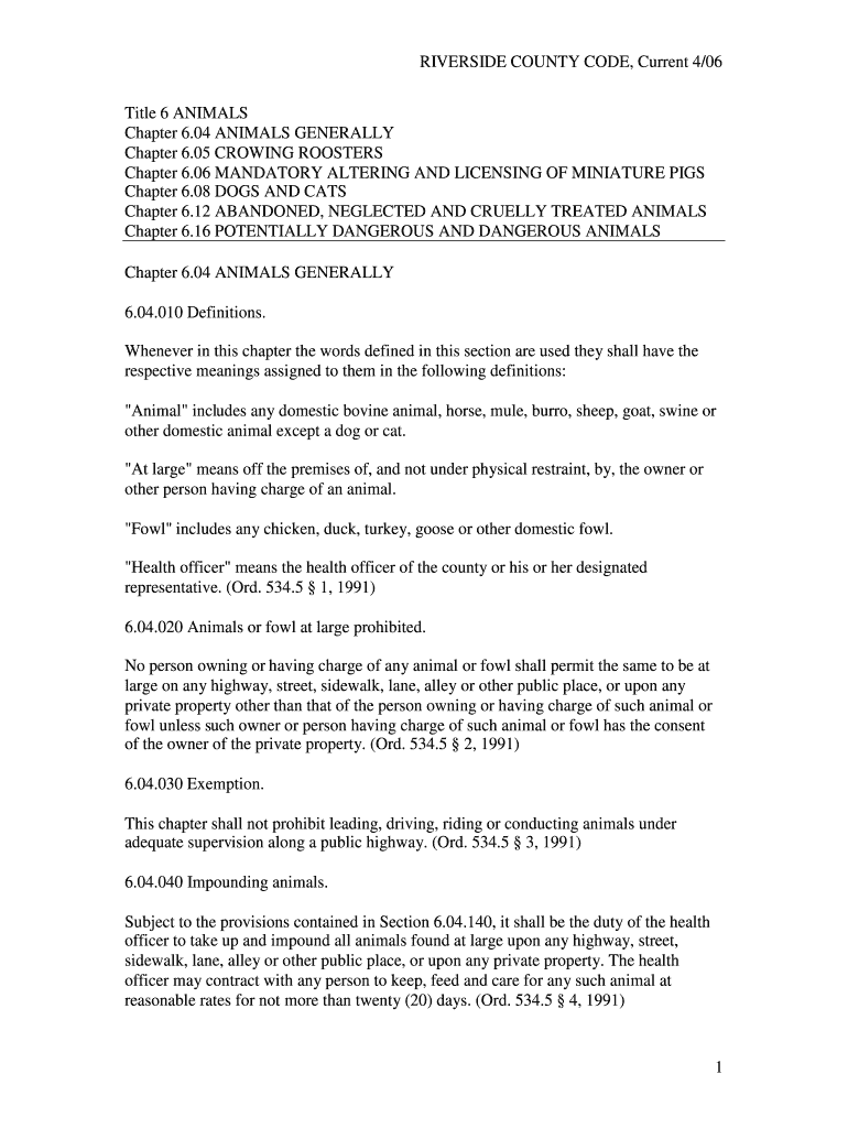 Get the free RIVERSIDE COUNTY CODE, Current 4/06 - The Animal Council