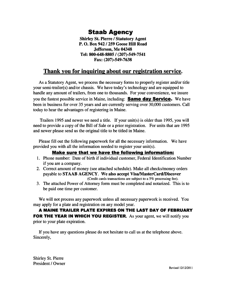 Registering trailers is crucial to comply with state regulations, which helps avoid legal disputes and fines. Users benefit from completing the registration promptly, ensuring they are legally compliant. Additionally, services provided by Staab Agency, such as same-day processing, further enhance the registration experience.