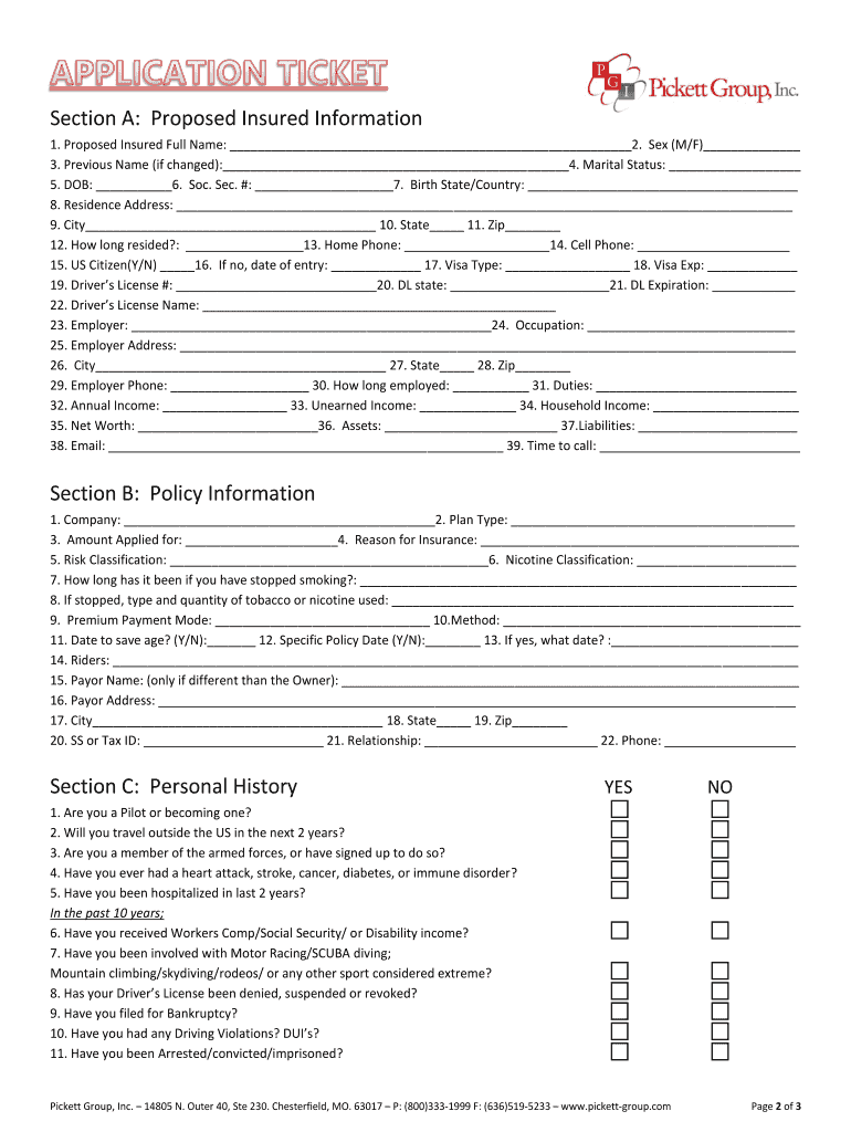 Get the free Pickett Group Life Insurance Application Ticket