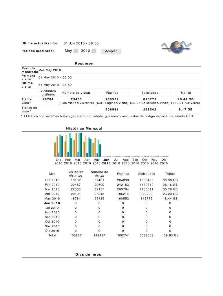 Get the free May 2010 Resumen Hist rico Mensual D as del mes - nueva iaph