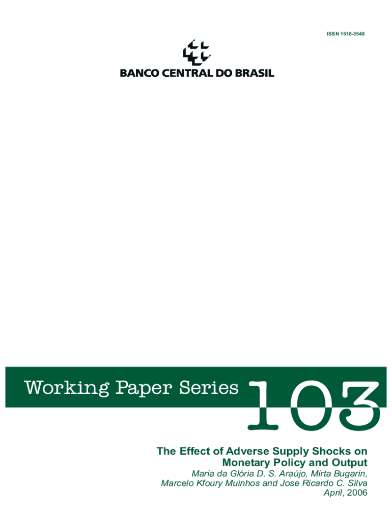 ISSN 15183548Working Paper Series The Effect of Adverse Supply Shocks on Monetary Policy and Output Maria the Gloria D. S. Arab, Marta Bulgaria, Marcelo Four Moons and Jose Ricardo C. Silva April,