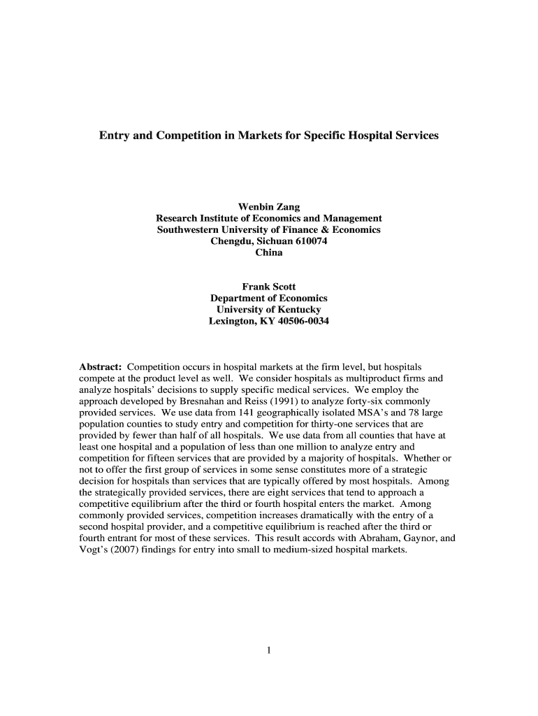Get the free Entry and Competition in Markets for Specific Hospital Services - se shufe edu