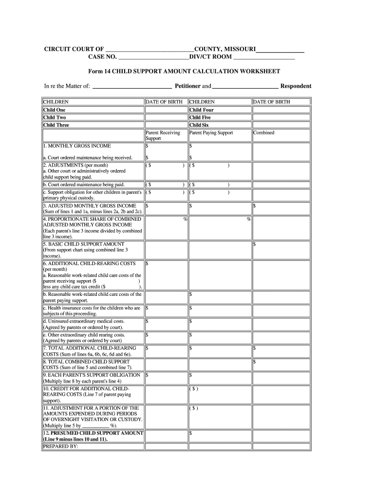 How to Fill Out the Missouri Child Support Calculation Worksheet Online