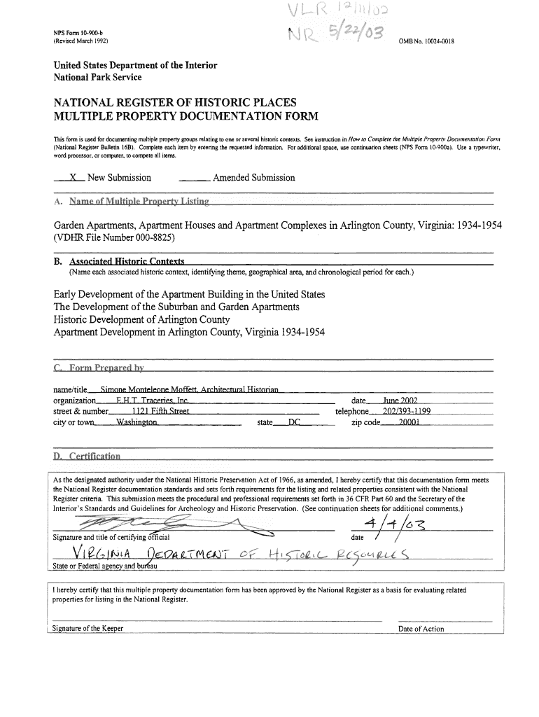 Get the free NPS Form 10-9OD-b - dhr virginia
