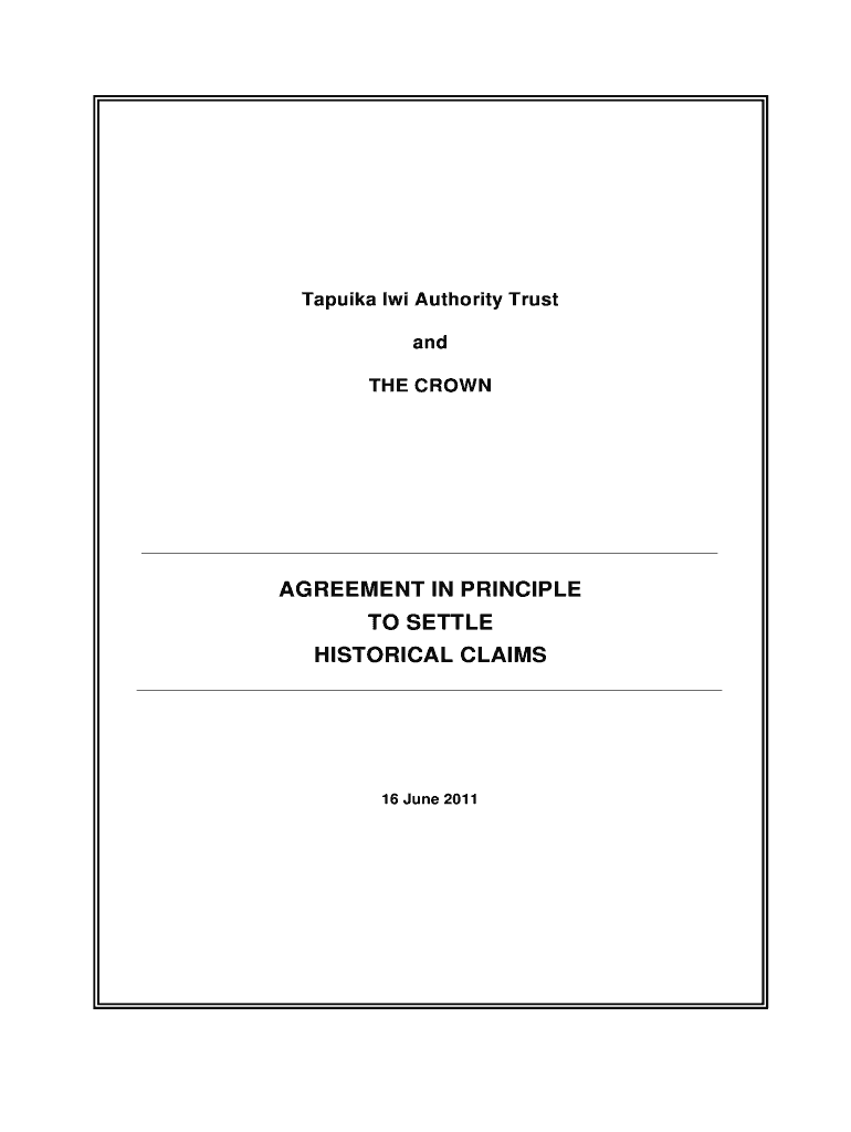 Paprika WWI Authority Trust and THE CROWN AGREEMENT IN PRINCIPLE TO SETTLE HISTORICAL CLAIMS 16 June 2011 1 WITHOUT PREJUDICE PAPRIKA AGREEMENT IN PRINCIPLE TABLE OF CONTENTS 1 BACKGROUND ....................................................................................