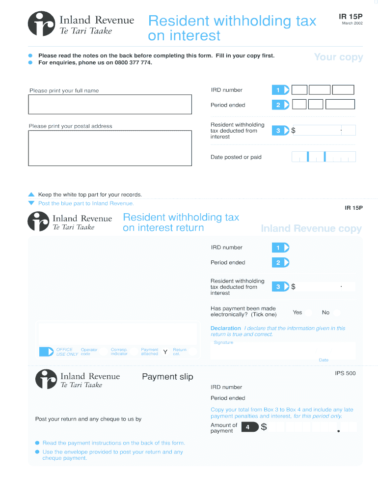 Any New Zealand resident who has had resident withholding tax deducted from their interest income is eligible to use the IR 15P form to report and pay this tax.