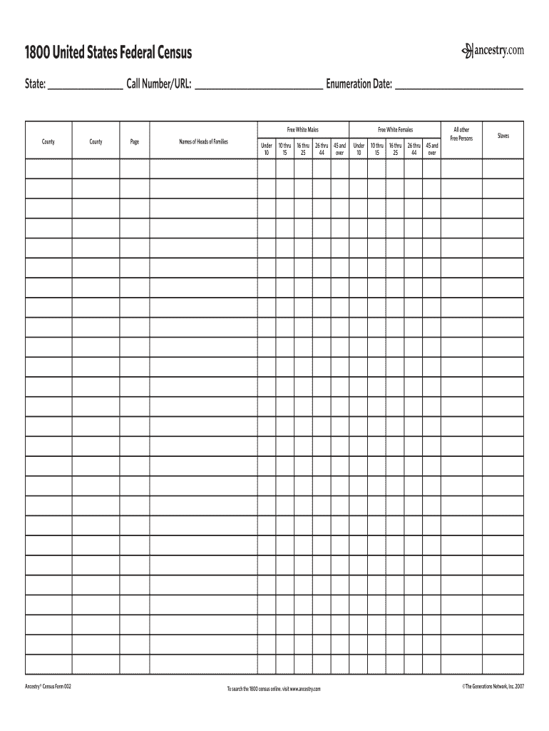 Get the free 1800 US Federal Census Form