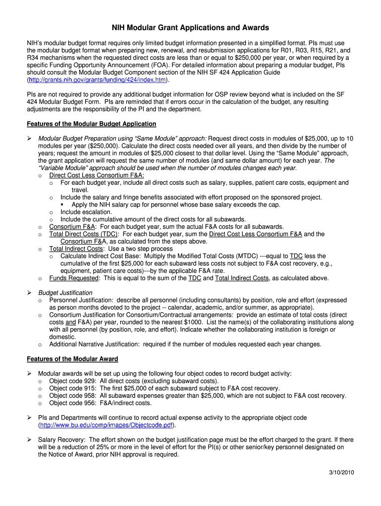 Get the free NIH Modular Grant Applications and Awards