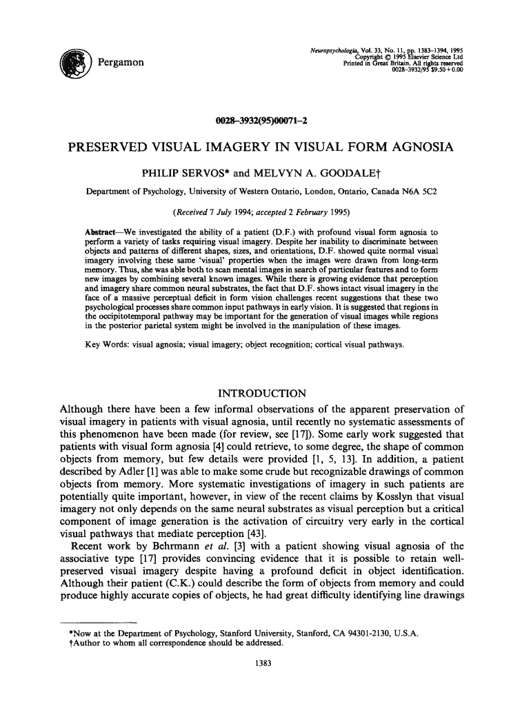 Get the free Servos (1995) Preserved visual imagery in visual form agnosia