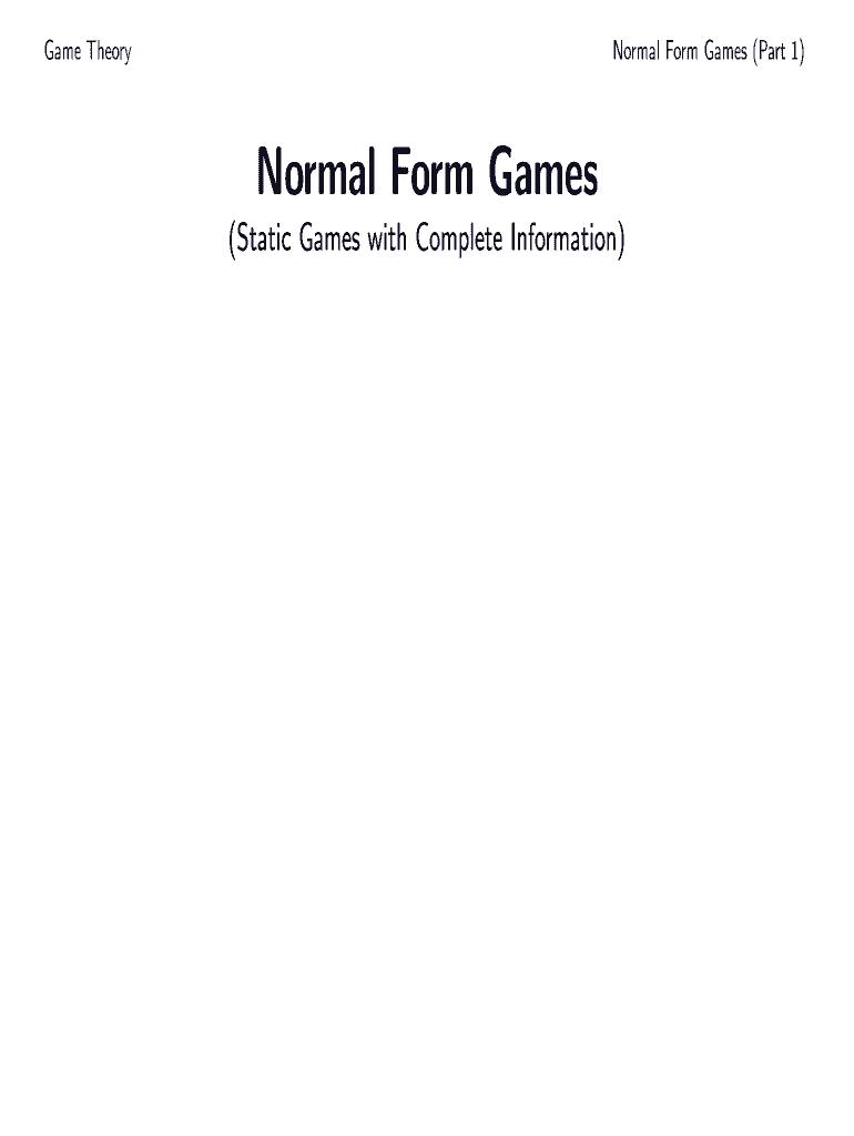 Game Theory Normal Form Games (Part 1) Normal Form Games (Static Games with Complete Information) Game Theory Normal Form Games (Part 1) Normal Form Games (Static Games with Complete Information)