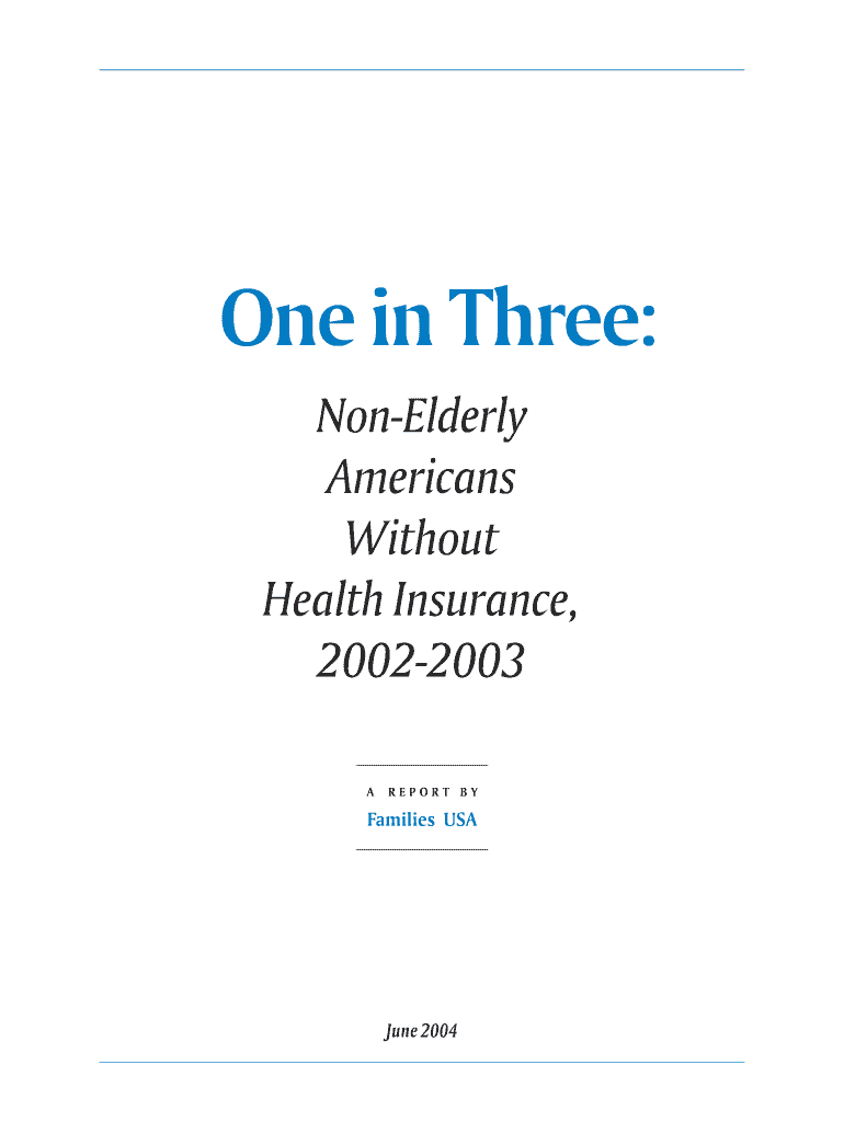 One in Three: Non-Elderly Americans Without Health Insurance, 2002-2003 A REPORT BY Families USA June 2004 One in Three: Non-Elderly Americans Without Health Insurance, 2002-2003 Families USA Publication