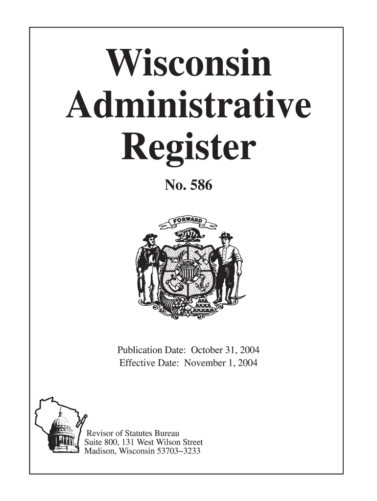 Wisconsin Administrative Register No. 586 Publication Date: October 31, 2004, Effective Date: November 1, 2004, Reviser of Statutes Bureau Suite 800, 131 West Wilson Street Madison, Wisconsin 53703-3233