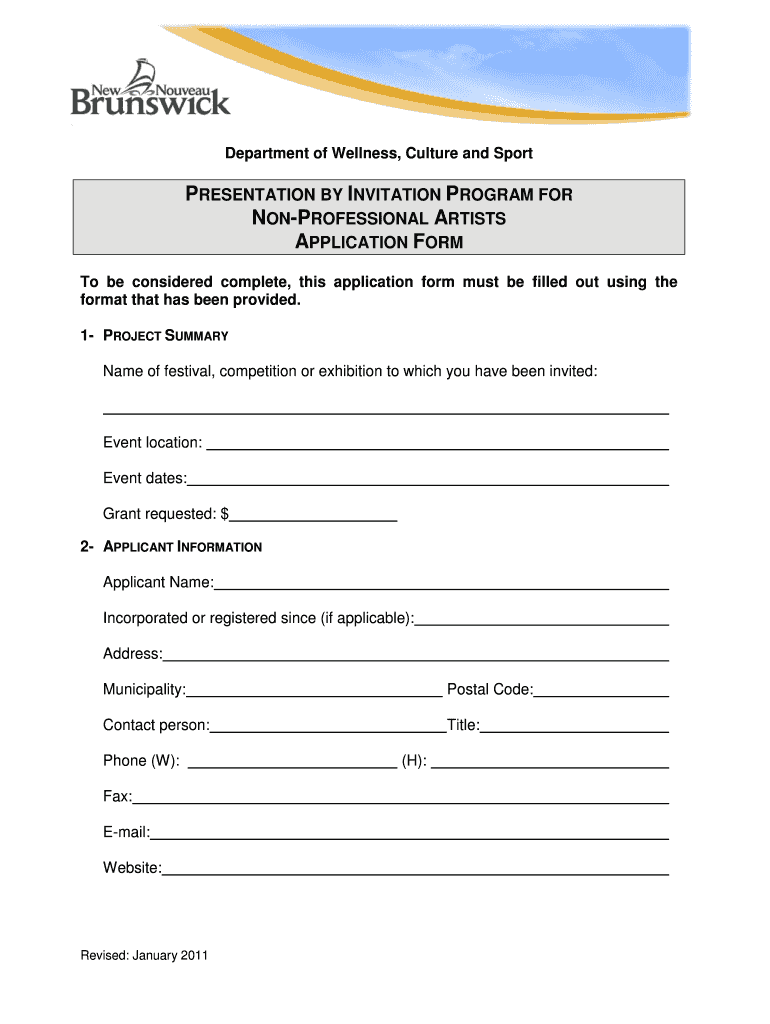Start by downloading the Presentation by Invitation Program for Non-Professional Artists Application Form from the official website.