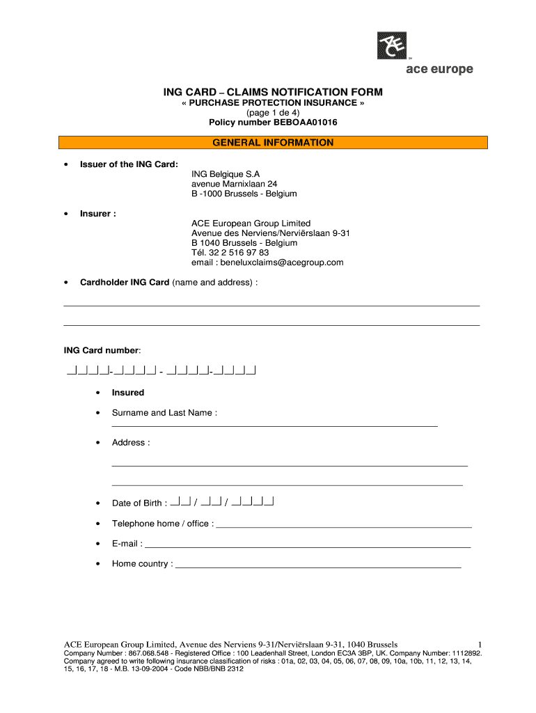 The ING Card Claims Notification Form is a crucial document designed specifically for ING cardholders in Belgium. It allows users to report losses or damages related to their purchases effectively. The form plays a significant role in the Purchase Protection Insurance process, ensuring that claims are well-documented and can be processed smoothly. By accurately completing this form, cardholders can streamline their insurance claim procedures.