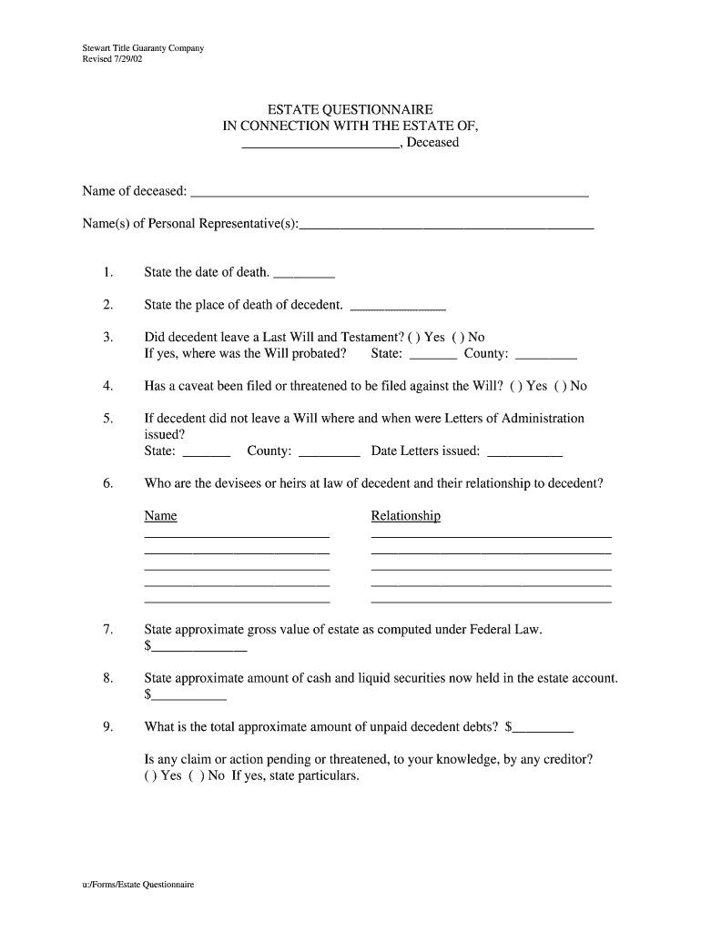 How to fill out estate questionnaire