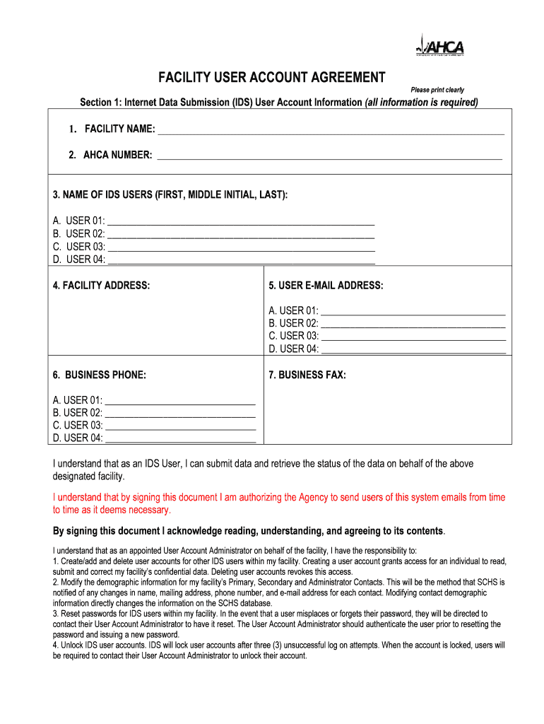 Get the free Facility User Account Agreement