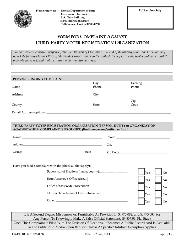 How to fill out FORM FOR COMPLAINT AGAINST THIRD-PARTY VOTER REGISTRATION ORGANIZATION?