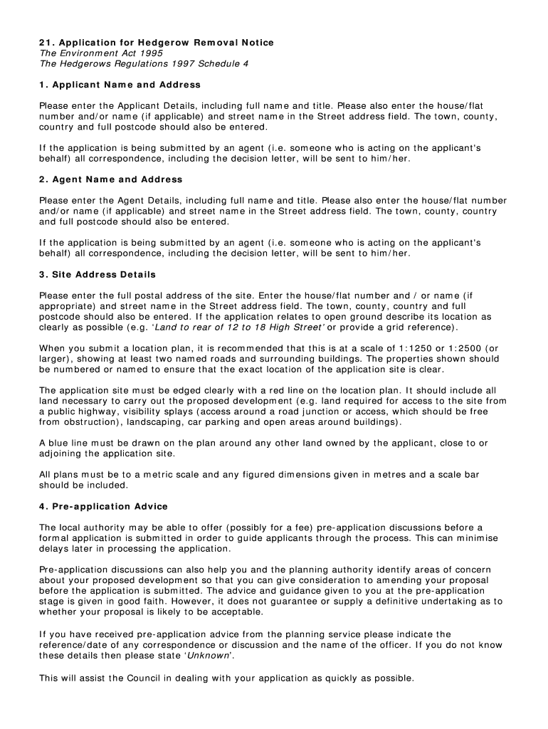 Edit your application for hedgerow removal form online