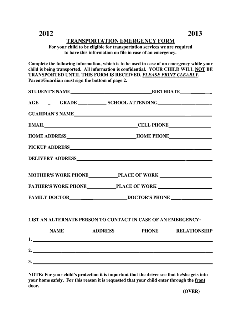 Get the free Transportation Emergency Form